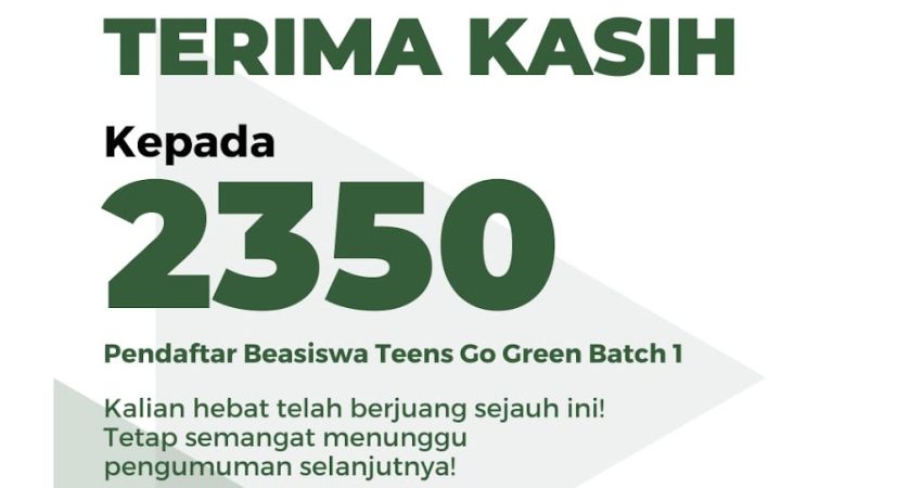 Teens Go Green Indonesia mengucapkan terima kasih kepada 2350 pendaftar beasiswa. Jumlah yang begitu besar sebagai representasi antusiasme dan semangat anak-anak muda di Indonesia. Seleksi beasiswa ini adalah proses yang berat bagi tim beasiswa karena kami melihat begitu banyak potensi…