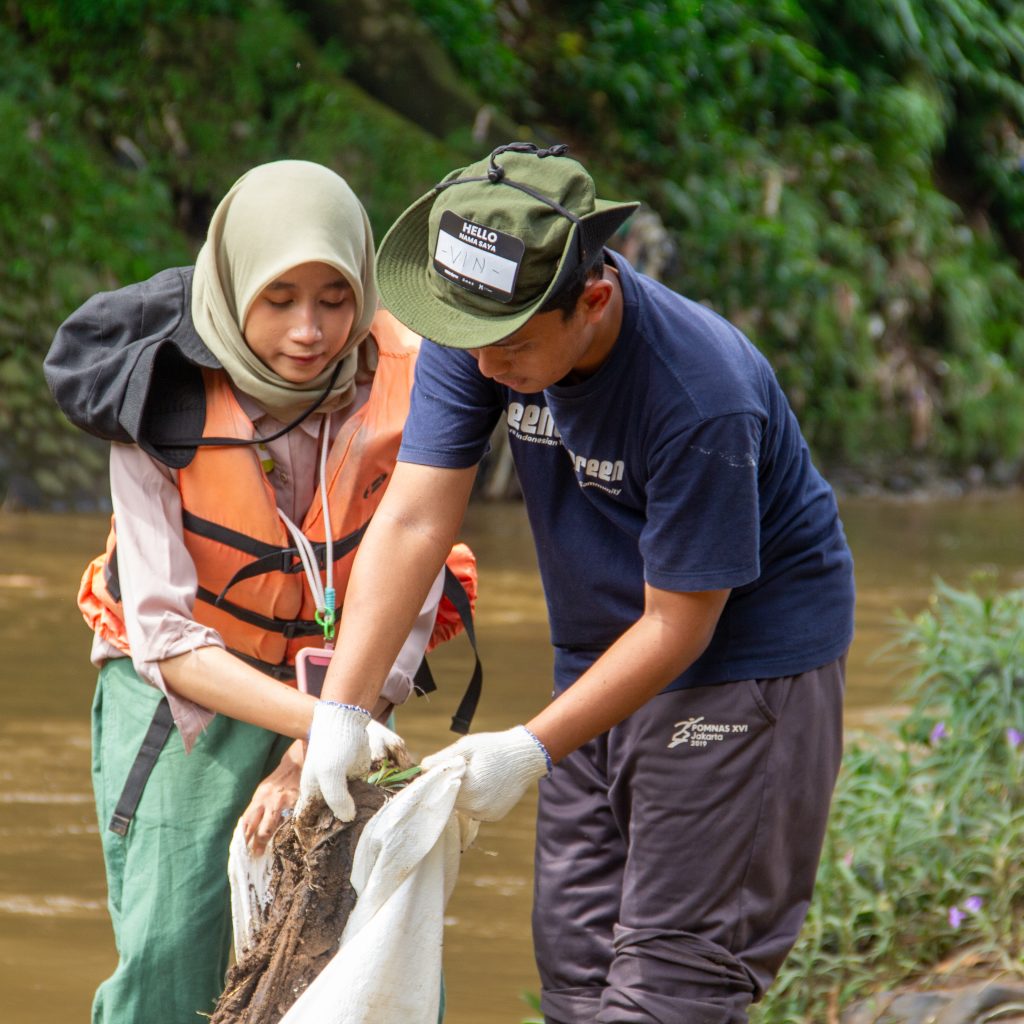 Rangkaian kegiatan dimulai sejak pukul 08.00 WIB dengan berbagai aktivitas yang menggabungkan edukasi dan aksi lapangan, mulai dari pembersihan sampah sungai dan penimbangan sampah, hingga penanaman pohon di area sempadan Sungai Ciliwung. Peserta juga mengikuti workshop pembuatan lubang resapan biopori, kegiatan berkebun, serta pengenalan satwa liar yang hidup di ekosistem sungai.